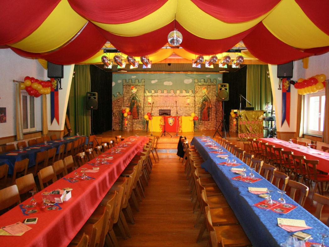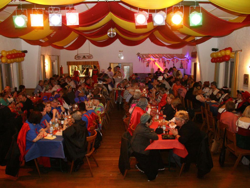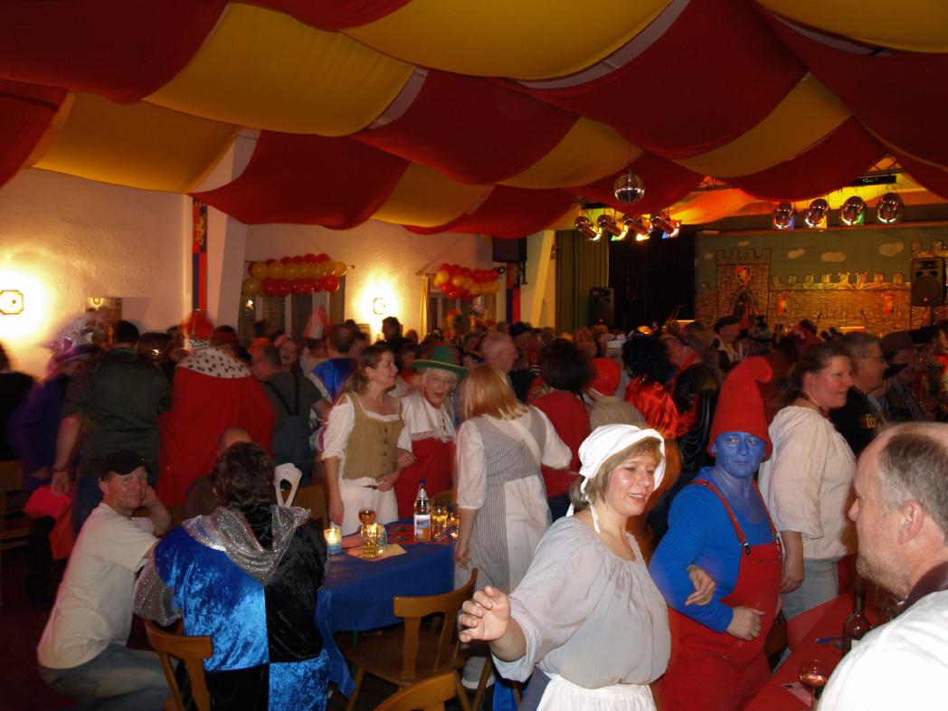 "Ritter Fred vom Schlackenstein lädt zur Schwafelrunde ein" - Unter diesem Motto traf sich das närrische Volk in phantasiereichen, dem Motto angepassten Kostümen in der wieder einmal ausverkauften Narrhalla von Grube Messel, der Sängerhalle.