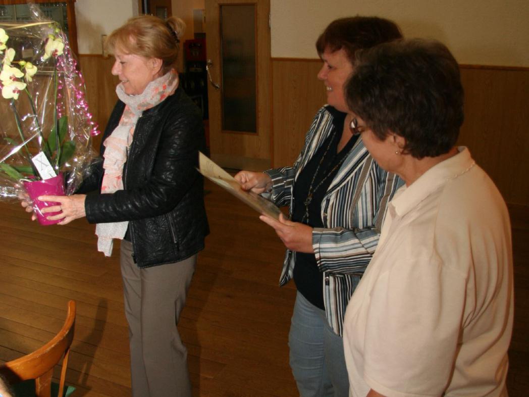Unsere 2. Vorsitzende Rosmarie Odenthal bedankte sich bei Claudia Graf für 8 Jahre engagierte Leitung des Vereins und übergab ihr ein dafür ein Präsent, langanhaltender Applaus unterstrich die Wertschäftzung der geleisteten Arbeit von Claudia Graf.