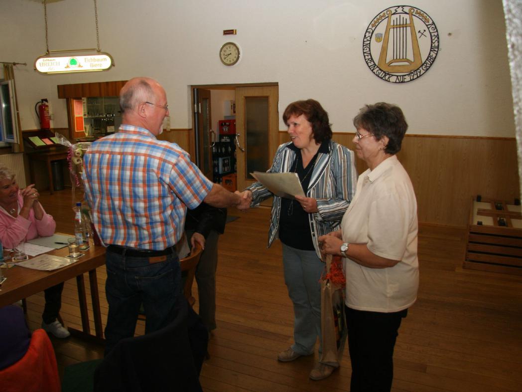 Danach nahm die 1. Vorsitzende mehrere Ehrungen vor. Für 60 Jahre Mitgliedschaft im Verein wurde Armin Heckwolf, für 25 Jahre Günter Hoff sowie Heidrun und Josef Zacharias geehrt. Für 40 Jahre Mitgliedschaft im Chor wurde Anton Tengler geehrt. Alle Geehrten erhielten eine Urkunde und ein kleines Präsent als Dank für diese langjährige Treue zum Verein und viel Applaus von den Anwesenden.