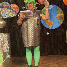 Raumschiffkapiän Manfred Mößle, der wieder in bewährter Manier souverän durch das Programm führte, bedankte sich bei allen Mitwirkenden, den vielen Helferinnen und Helfern vor und hinter den Kulissen und den Närrinnen und Narren im Saal für die tolle Stimmung. Einen besonderen Dank ging an Marcel Stork, der wieder für Licht und Ton zuständig war und diese Aufgabe bestens gemeistert hat und an Andrea Stork für die Erstellung der „außerirdischen Orden“.