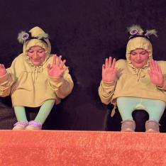 Nach der Pause faszinierten die Funzelchen(Bine Grass, Andrea Höhne, Bine Schneider und Vera Hoff) mit einem phantasievollen „Puppentanz“ auf der schwarzen Bühne.