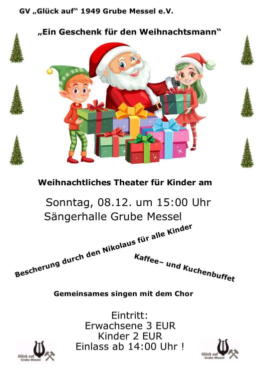 Aufgeführt wird das Weihnachtsmärchen „Ein Geschenk für den Weihnachtsmann“ von Kindern aus Messel und Grube Messel.