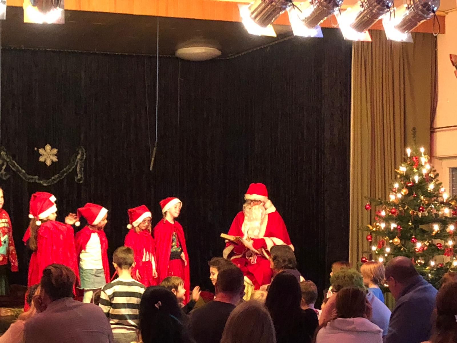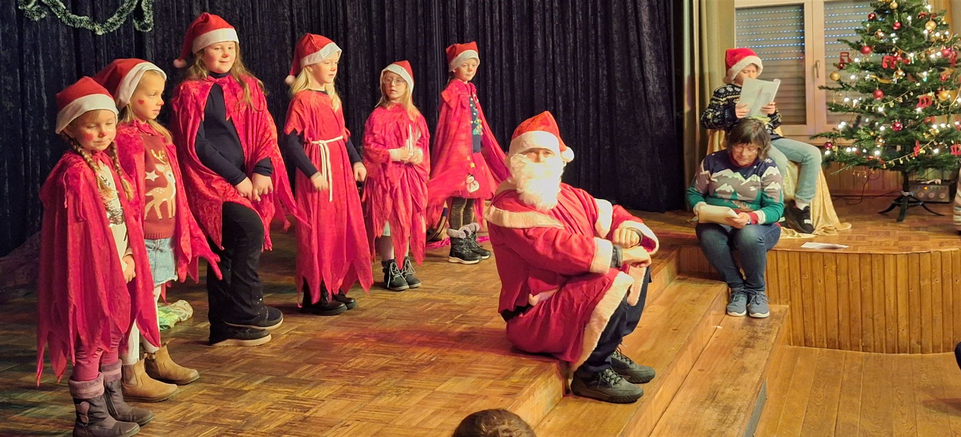 Unsere Vorsitzende Christa Bäcker begrüßte am Sonntag, 07.12., zahlreiche große und kleine Gäste in der gut besuchten Sängerhalle. Höhepunkt war das weihnachtliche Kindertheater „Ein Geschenk für den Weihnachtsmann“, aufgeführt von Kindern aus Messel und Grube Messel. Das Märchen erzählt, wie Engel und Wichtel versuchen, den traurigen Weihnachtsmann wieder fröhlich zu machen, weil er selbst noch nie ein Geschenk erhalten hat. Die kleinen Schauspieler begeisterten in hübschen Kostümen und das Publikum dankte dafür mit viel Applaus. Für die Einstudierung danken wir Lisa Dörr sowie allen Helferinnen und Helfern; in der Rolle des Nikolaus war Mika Schmitt zu sehen. Die Sängerinnen und Sänger des Chores begleiteten zusammen mit dem Publikum das Programm mit festlichen Liedern. Wie jedes Jahr verteilte der Nikolaus kleine Geschenke an die Kinder; anschließend gab es Kaffee und Kuchen. Herzlichen Dank an alle Besucherinnen und Besucher, an die Helferinnen und Helfer und an die Kuchenbäckerinnen. Mitgewirkt haben: Fynn Schulz, Ida Schulz, Louisa Mößle, Amelie Thierling, Elina Bachmann, Lilith Reisinger, Luana Ollenburger und Lenya Thielen.