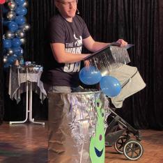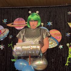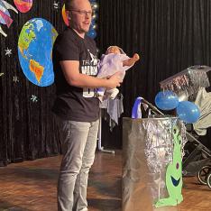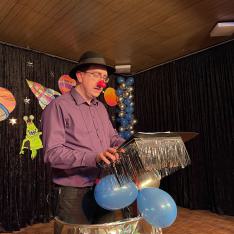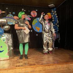 Raumschiffkapiän Manfred Mößle, der wieder in bewährter Manier souverän durch das Programm führte, bedankte sich bei allen Mitwirkenden, den vielen Helferinnen und Helfern vor und hinter den Kulissen und den Närrinnen und Narren im Saal für die tolle Stimmung. Einen besonderen Dank ging an Marcel Stork, der wieder für Licht und Ton zuständig war und diese Aufgabe bestens gemeistert hat und an Andrea Stork für die Erstellung der „außerirdischen Orden“.